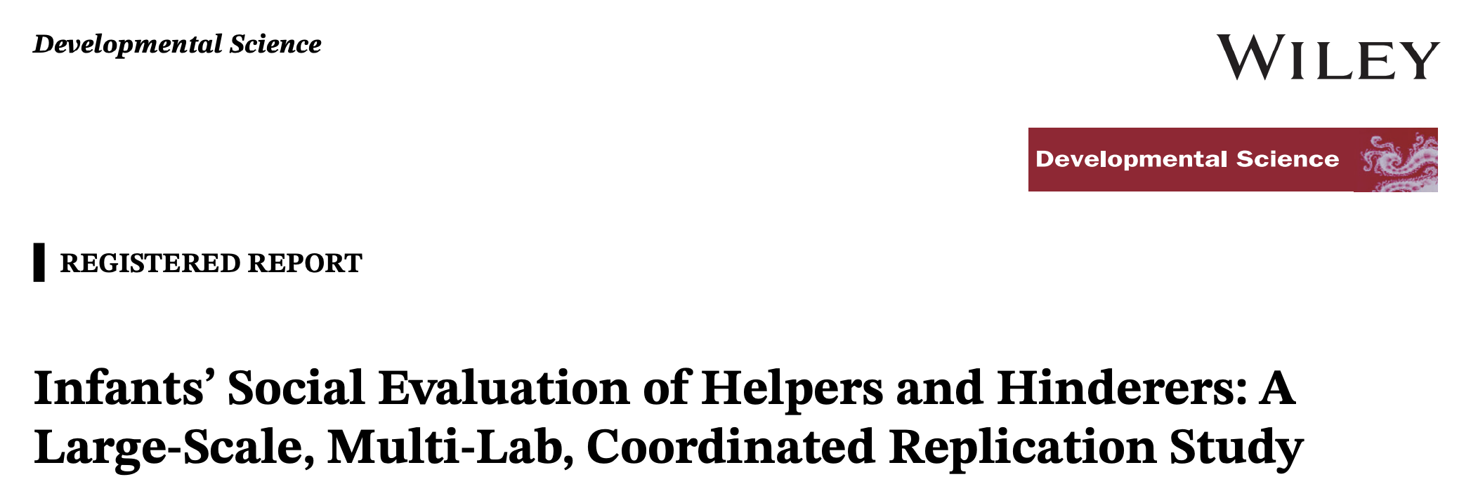 We present a preregistered, multi-laboratory, standardized study aimed at replicating infants’ preference for Helpers over Hinderers.