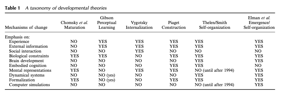Based on the theoretical taxonomy in Table 1, and our own discussions of it, we have reached the conclusion that connectionism and dynamic systems are not competing theories of development.