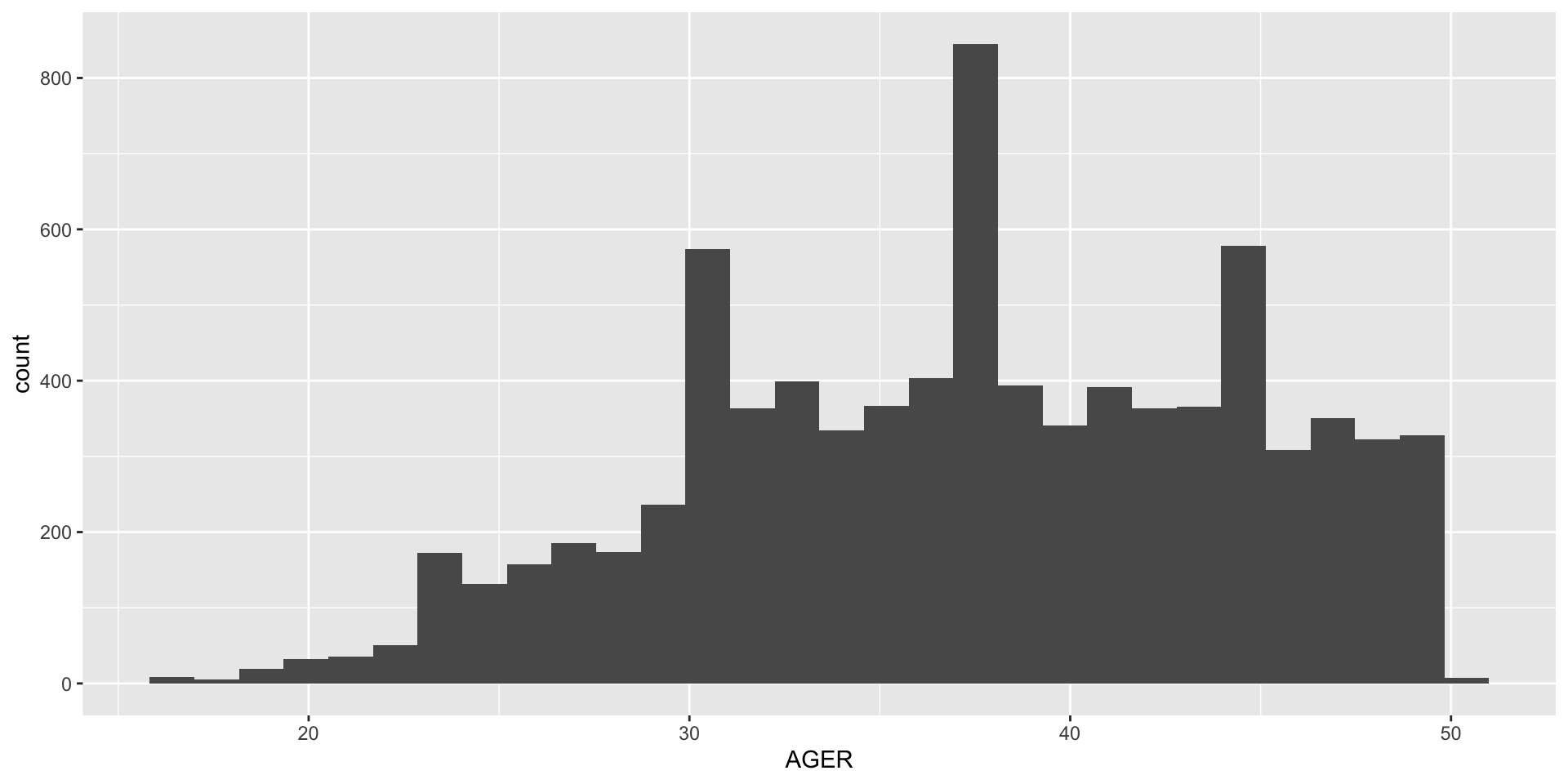 $ agepreg     : num [1:8247] 38 25 20 18 16 23 22 29 34 21 ...