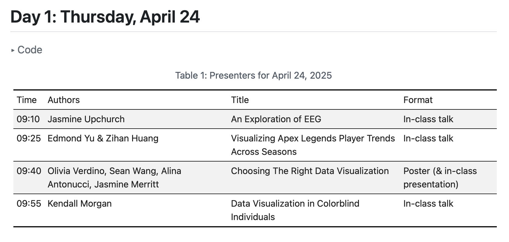 https://psu-psychology.github.io/psych-490-data-viz-2025-spring/supplemental/presentation-schedule.html#day-1-thursday-april-24