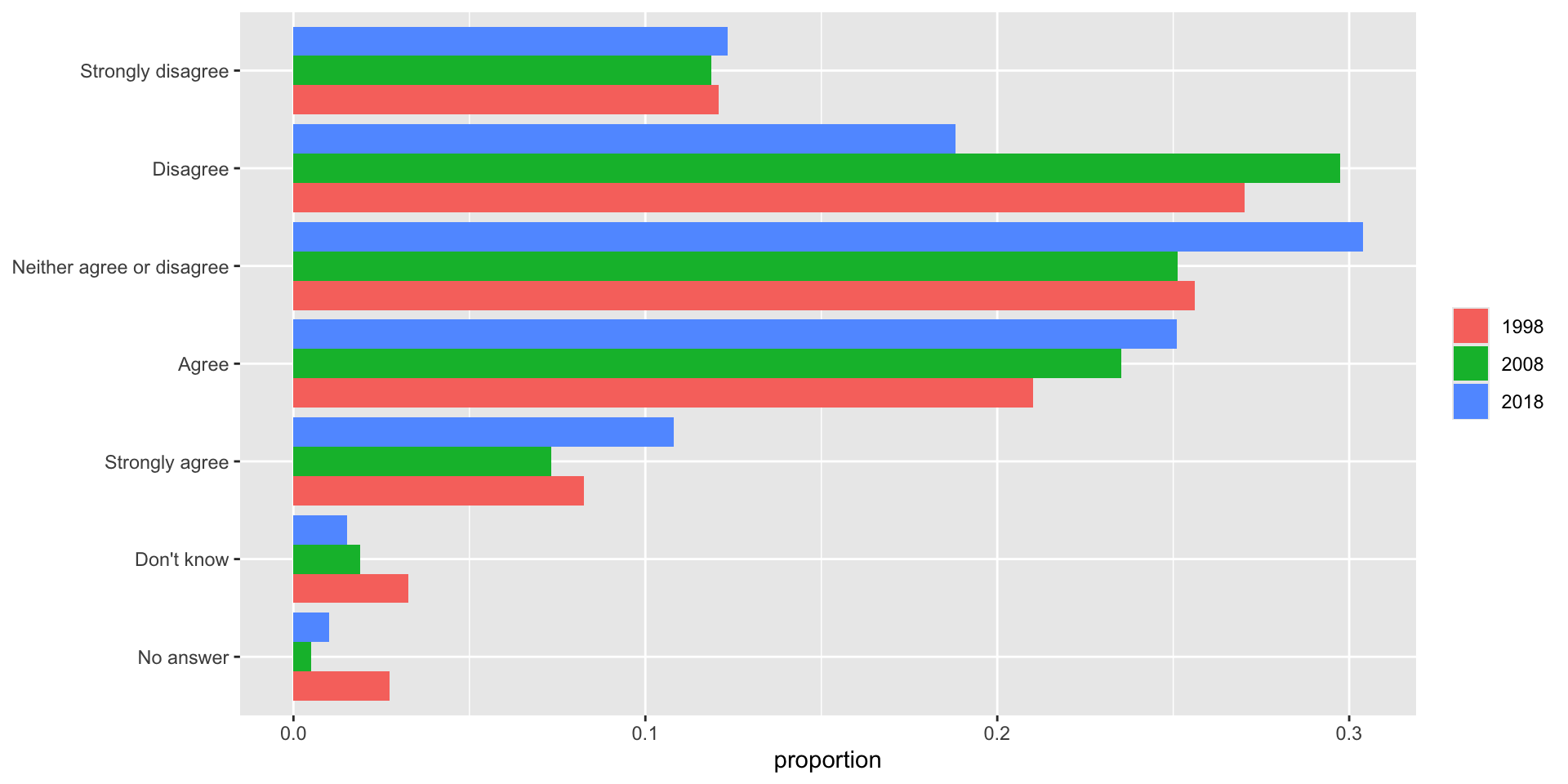 Figure 1: NORC survey results: ‘We trust too much in science and not enough in religious faith.’