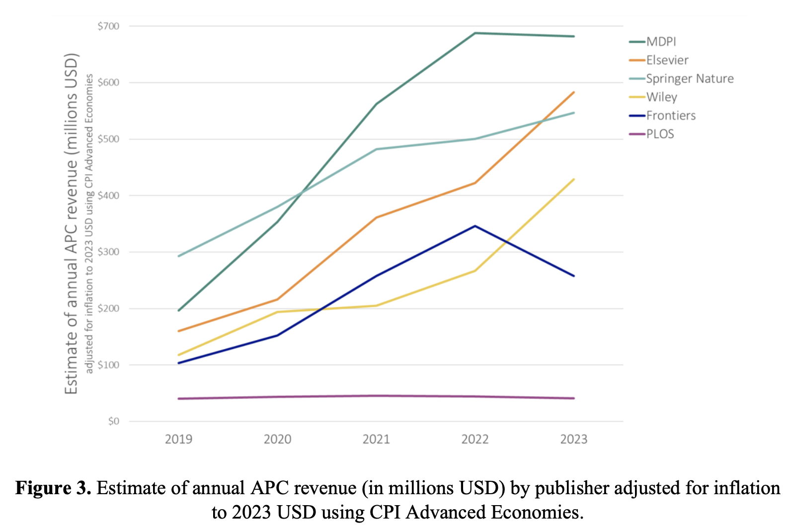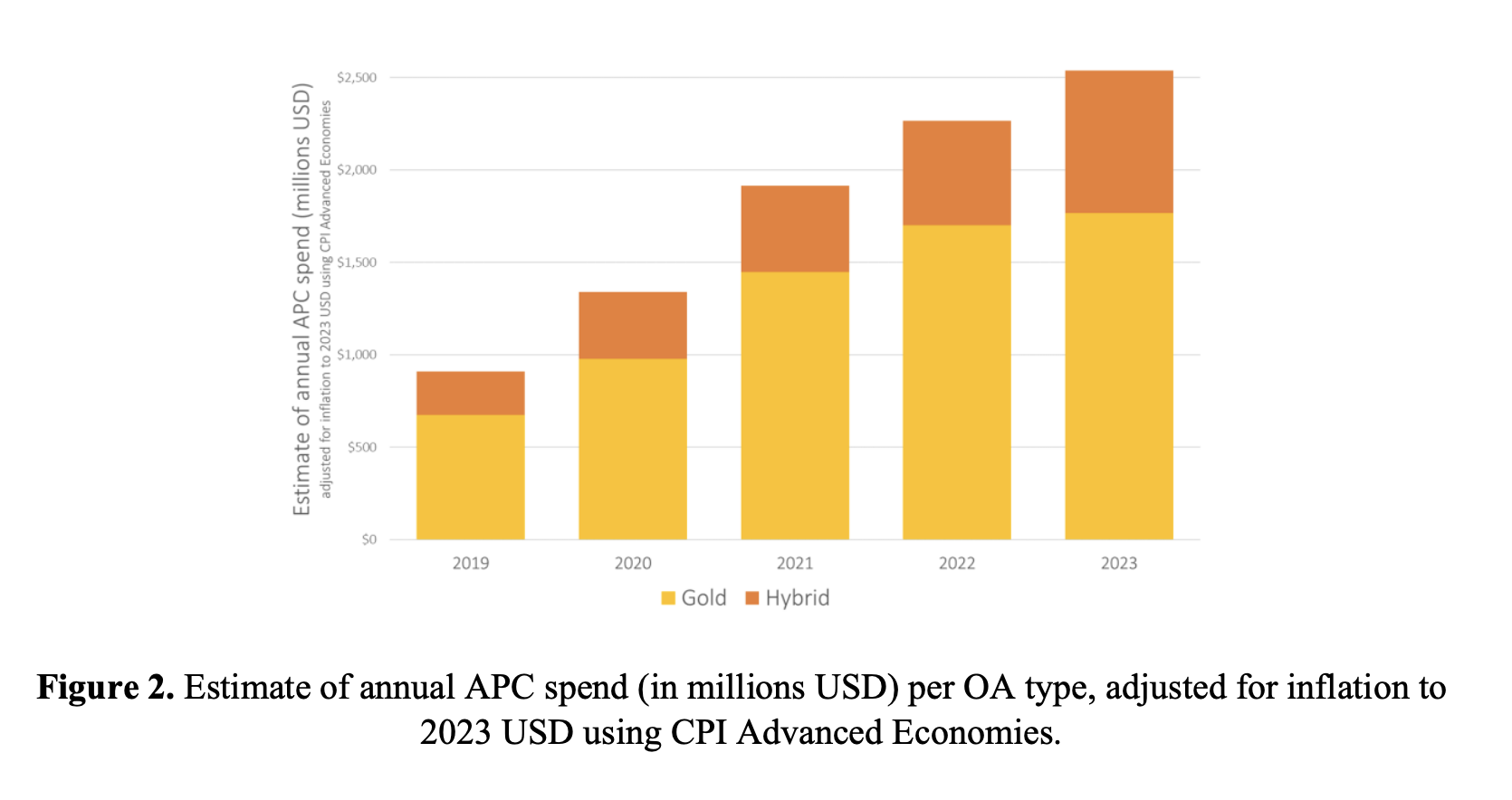 Haustein, S., Schares, E., Alperin, J. P., Hare, M., Butler, L.-A., & Schönfelder, N. (2024). Estimating global article processing charges paid to six publishers for open access between 2019 and 2023.