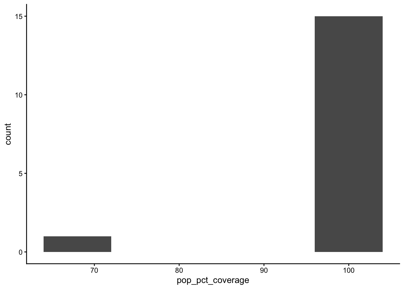 geom_histogram(aes(x=pop_pct_coverage), bins = 5) +