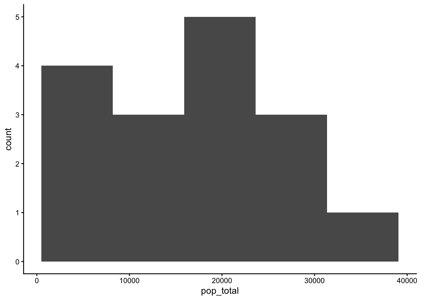 geom_histogram(aes(x=pop_total), bins = 5) +