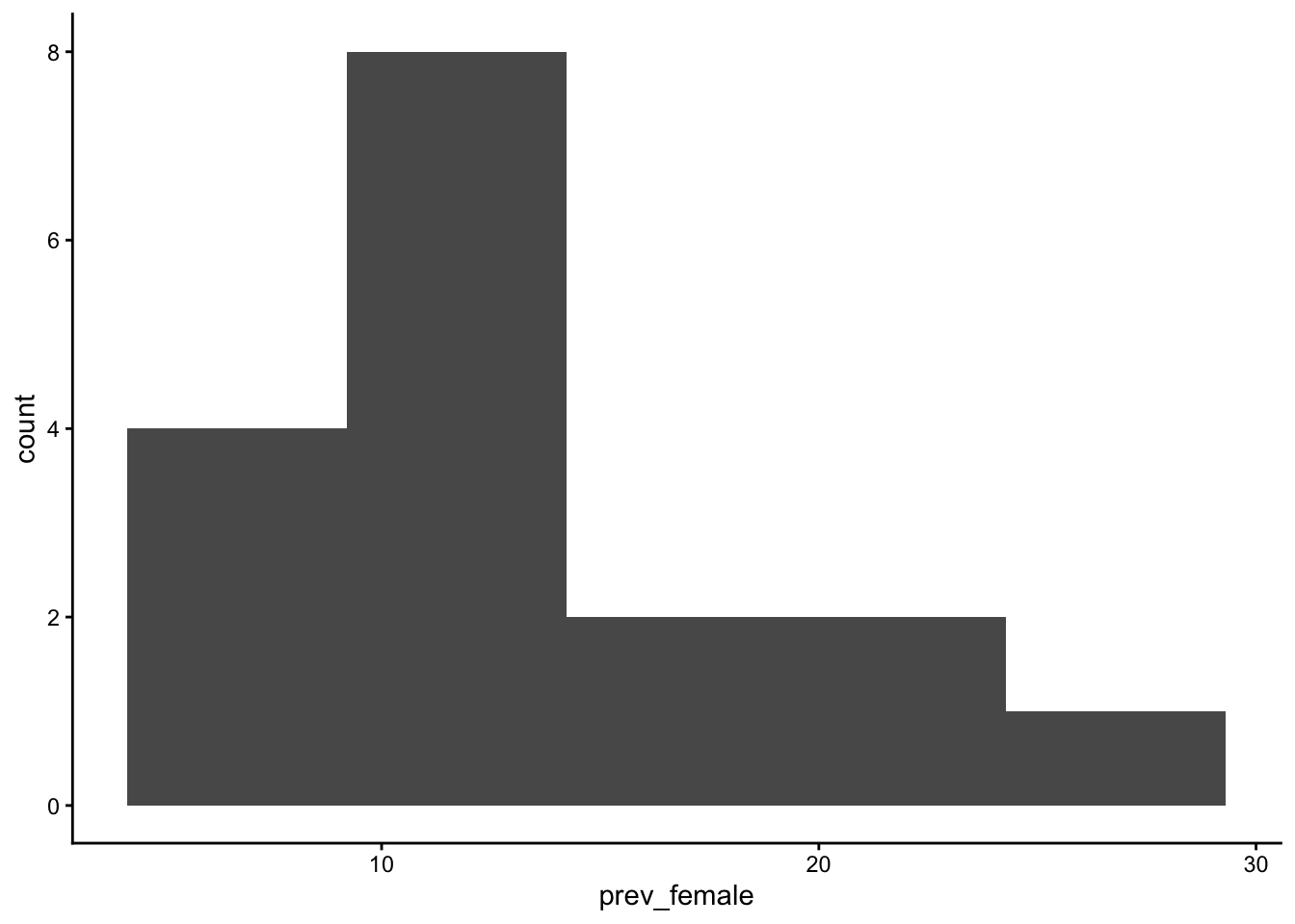 geom_histogram(aes(x=prev_female), bins = 5) +
