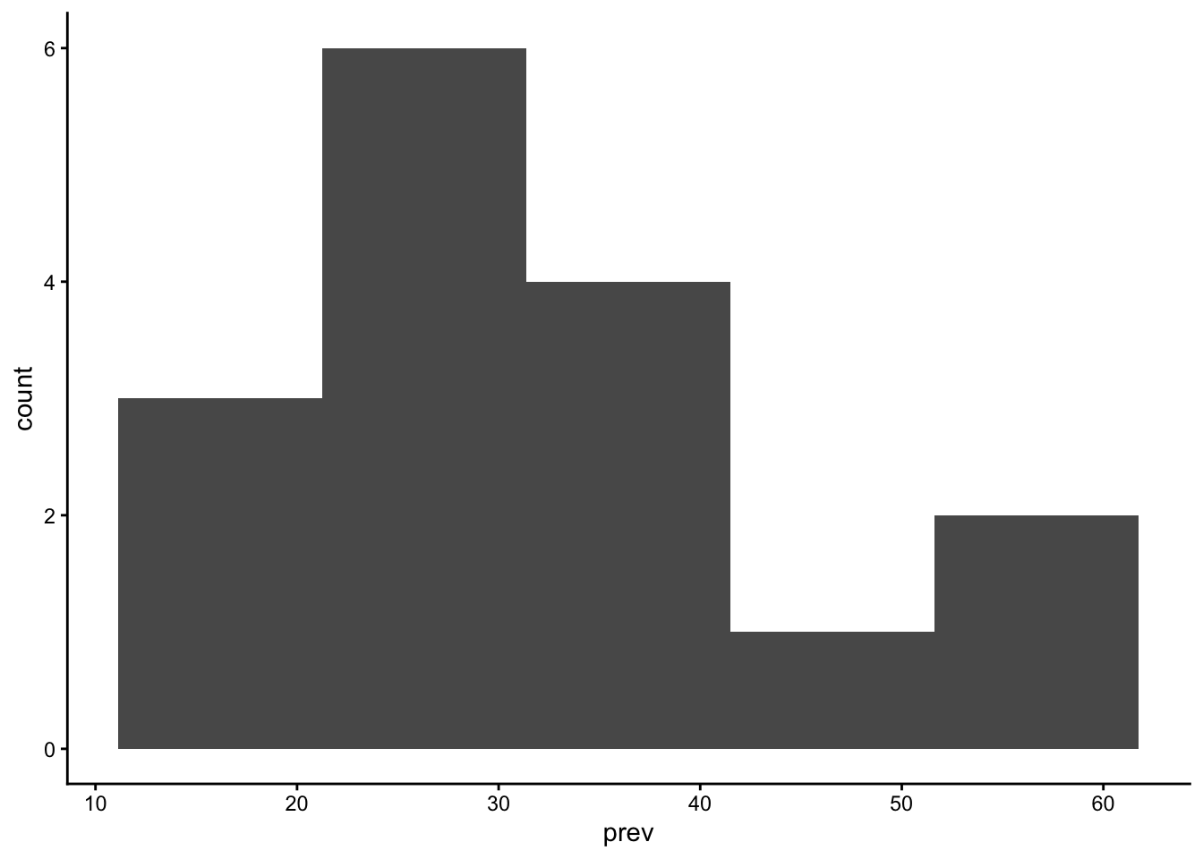 geom_histogram(aes(x=prev), bins = 5) +