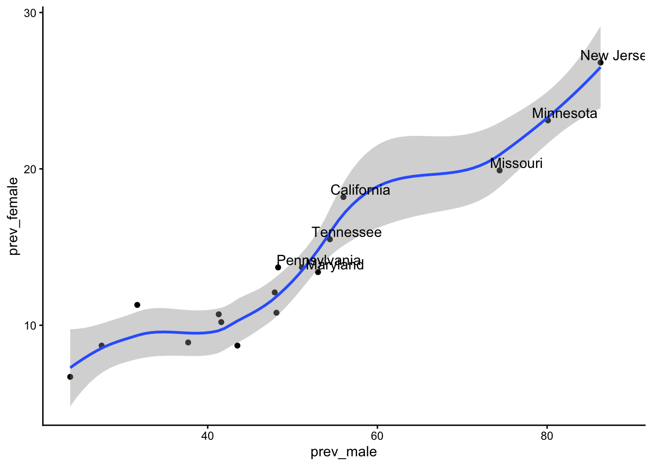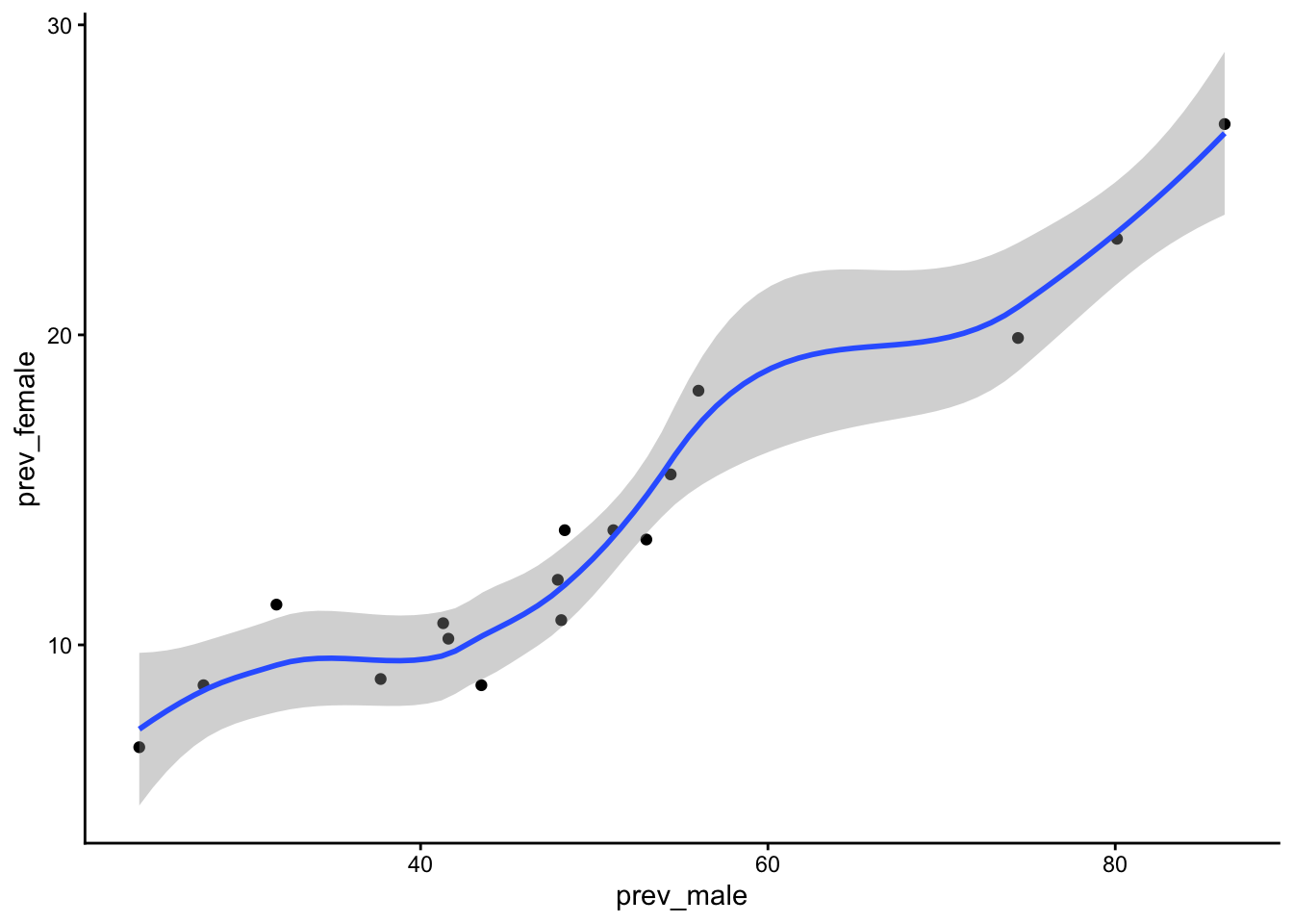 geom_smooth(aes(x = prev_male, y = prev_female)) +